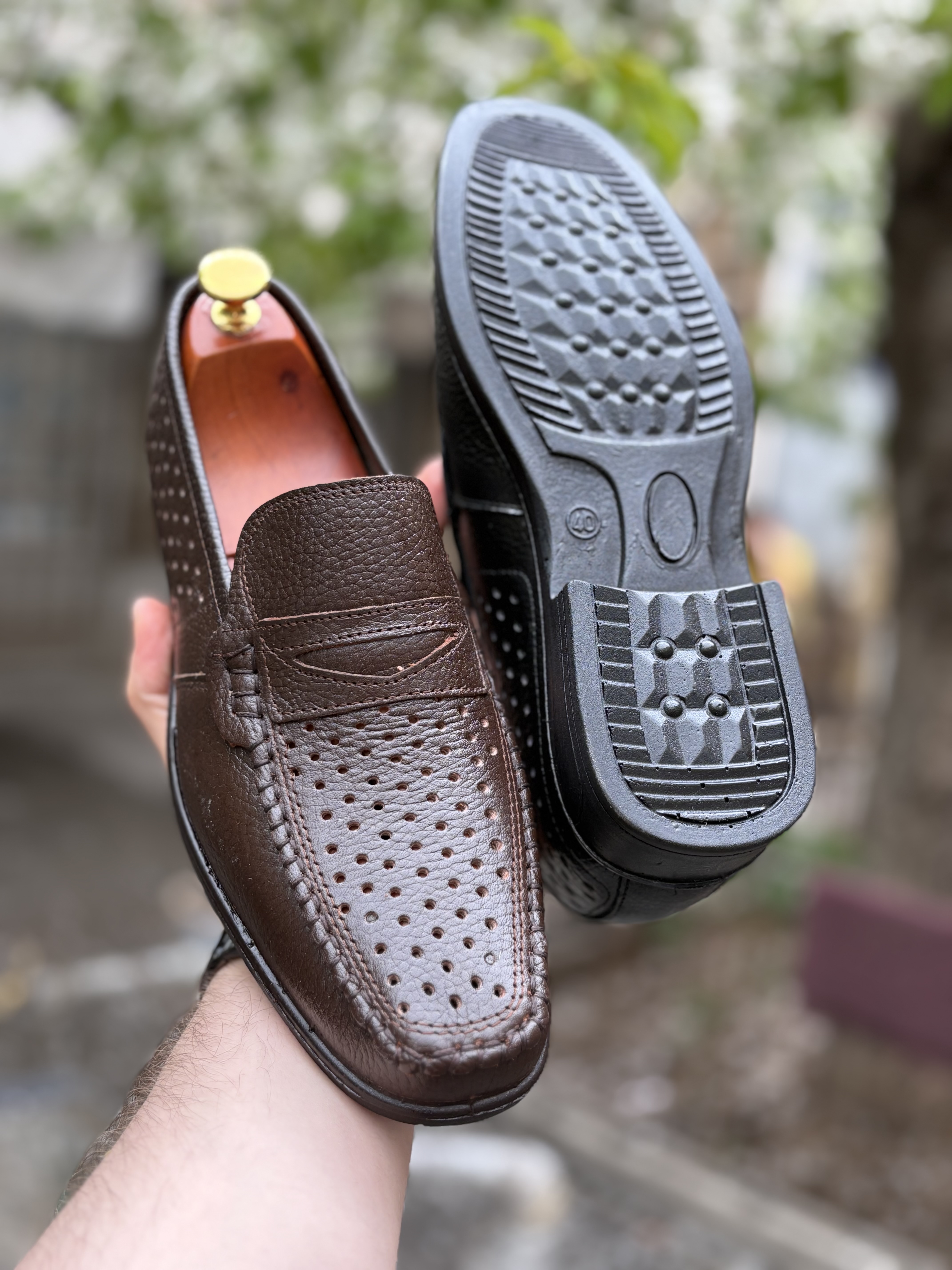 کفش تابستانی مدل فانتوف مردانه که تمام چرم طبیعی هستش وبسیار کار راحت برای روزمره و پیاده روی مناسب میباشد